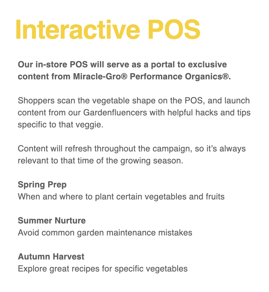 From our fresh and bold visuals and authentically simple tone, to engaging activation and strategically targeting media. we were able to usher in a whole new crop of gardeners to the Miracle-Gro brand.